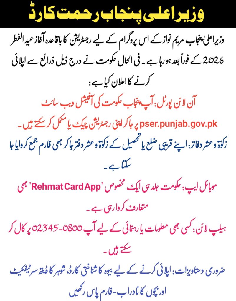 The Chief Minister Punjab Rehmat Card is a landmark social welfare project. It is designed to ensure that widows and orphans are not left alone in these challenging economic times.
