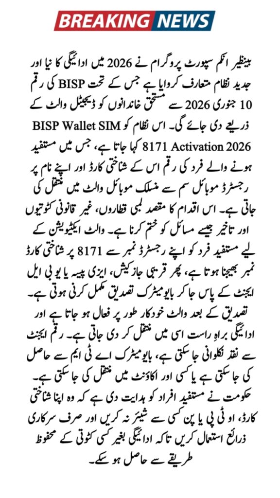 Big Update: BISP Wallet SIM 8171 Activation 2026 – Payment Starts from 10 January