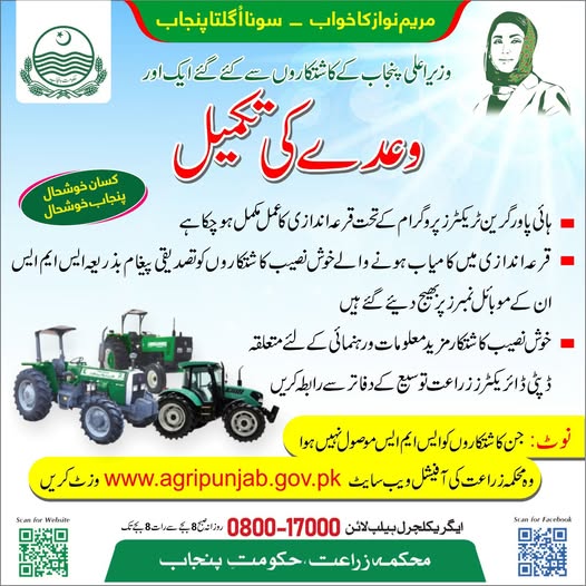 The Green Tractor Scheme Phase 3 (2026) is a major agricultural initiative launched by the Punjab Government to support small and medium farmers. Under this program, eligible farmers can purchase new tractors with subsidies of up to Rs. 1,000,000 per tractor. The scheme is fully digital, ensuring transparency through online applications, e-balloting, and SMS notifications, so that only deserving farmers benefit.