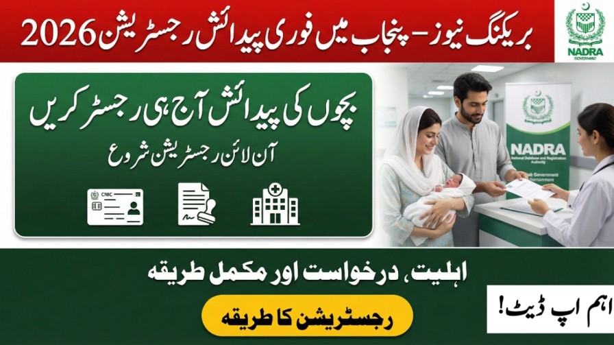 Punjab has launched a same-day birth registration system with NADRA, allowing parents to register their newborns on the very day of birth. Previously, families faced delays in obtaining the Child Registration Certificate (CRC), also called the B-Form. This initiative ensures every child receives a legal identity instantly, which is crucial for school admissions, passport applications, and government services. The program is a joint effort by the Local Government Department, Health Department, and NADRA, aimed at digitizing and simplifying birth documentation.
