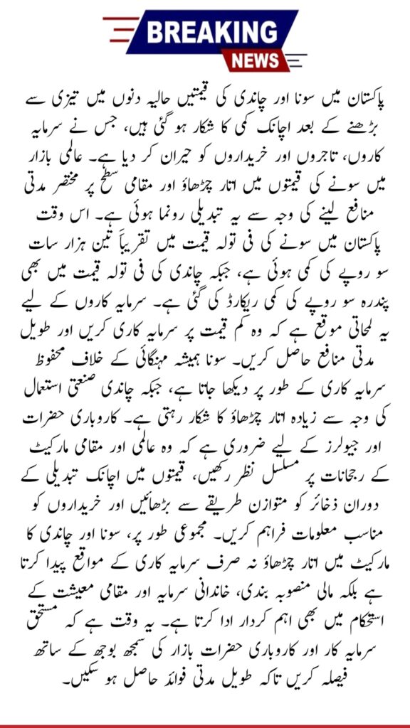 The decline in gold and silver prices in Pakistan offers a short-term opportunity for buyers, yet highlights the market’s sensitivity to global and domestic factors. Understanding domestic rates, international influences, and currency movements is essential for investors, traders, and business owners. Following market guidelines ensures maximum profitability and minimal risk in Pakistan’s precious metals sector.