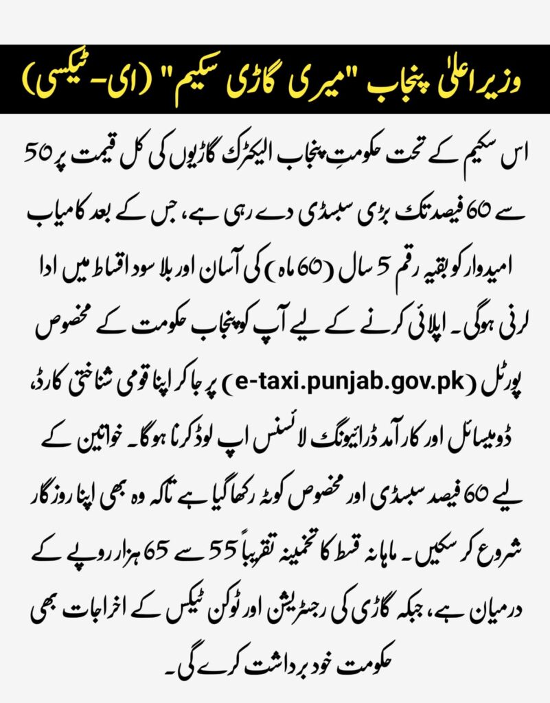 | Program Name | Punjab Meri Gari Scheme (E-Taxi Program) |